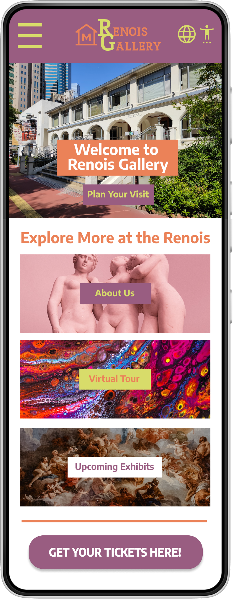 Goal: Design an addition for the Renois Gallery’s existing app that displays past, current and future exhibitions, including a virtual tour.