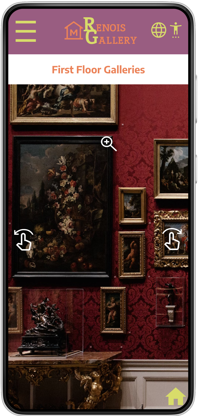 Virtual gallery tours are usually in English and too visually complex or “busy”.